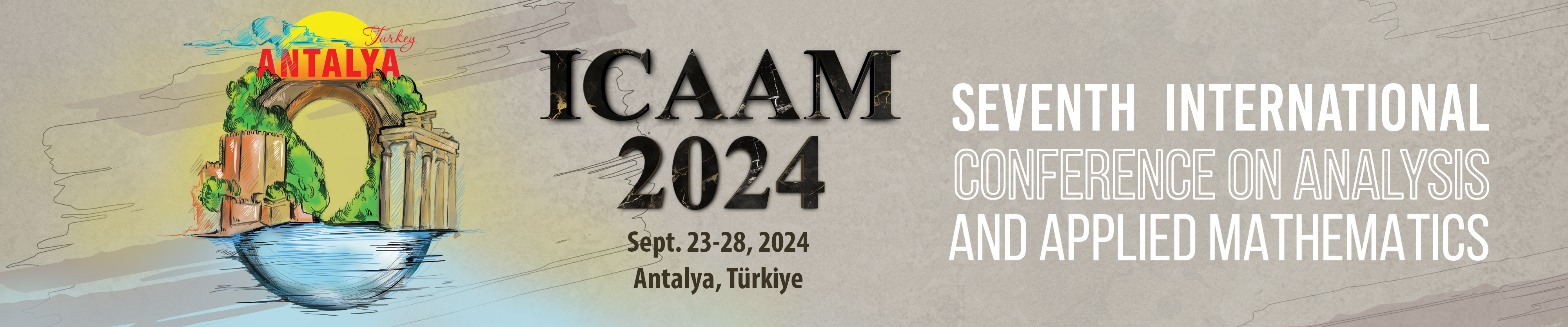 The Organizing Committee of ICAAM, Bahcesehir University, Türkiye, Institute of Mathematics and Mathematical Modelling, Kazakhstan, and Analysis & PDE Center, Ghent University, Belgium are pleased to invite you to the Seventh International Conference on Analysis and Applied Mathematics, ICAAM 2024. The meeting will be held from September 23 to 28, 2024, in Antalya, Türkiye.